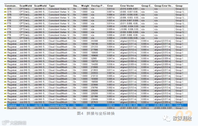 在点云视图中提取标靶,并编号。通过公共标靶,自动拼接,精度高。匹配控制点坐标,转换成绝对坐标,和当地成果无缝对接。