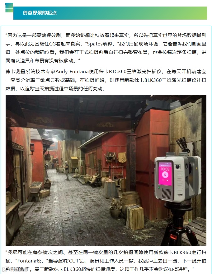 在剧集《降世神通:最后的气宗》中,Netflix视效总监Marion Spates借助徕卡三维激光扫描技术精准捕捉片场环境,为剧集复杂的视觉特效流程提供所需的三维数据,让这个奇幻世界触手可及。
