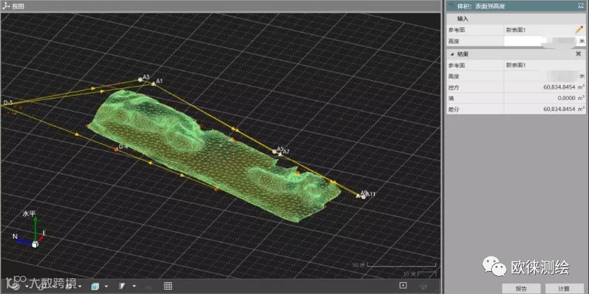 徕卡Infinity软件还可以计算测量表面到某点、到某基准面的量差值,适用于不同场景下的方量计算。
