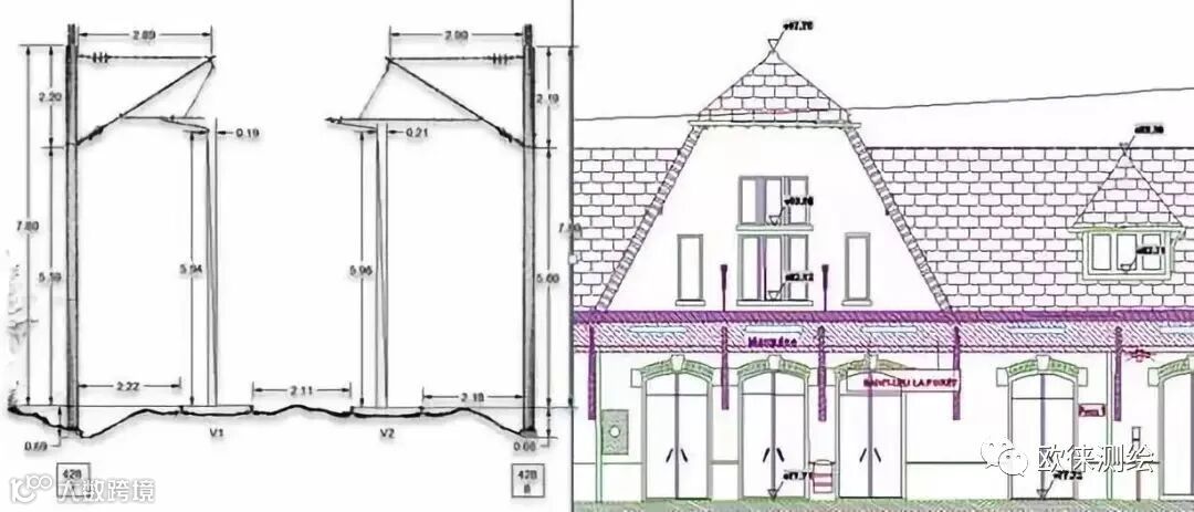对接触网断面、站台立面等都可轻松提取,生成成果图,断面的相对精度较高,优于5mm,简单几步就可导出断面图,如下: