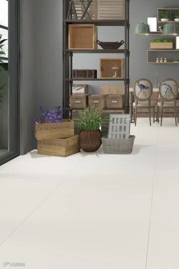 素色极简通常以浅色系大面积铺贴为主,让自然光透进简洁的地面上,映出空间的舒适感与开阔感。