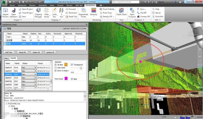 主要应用于:在Navisworks软件中打开点云项目数,基于点云项目数据的分析、仿真和项目信息交流,帮助设计和施工专家在施工中判断和分析问题。
