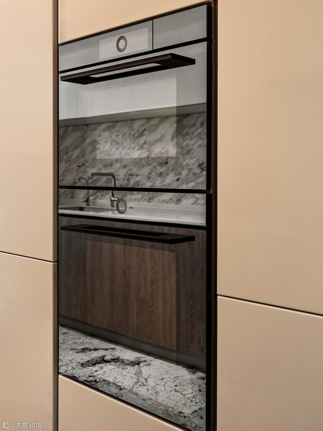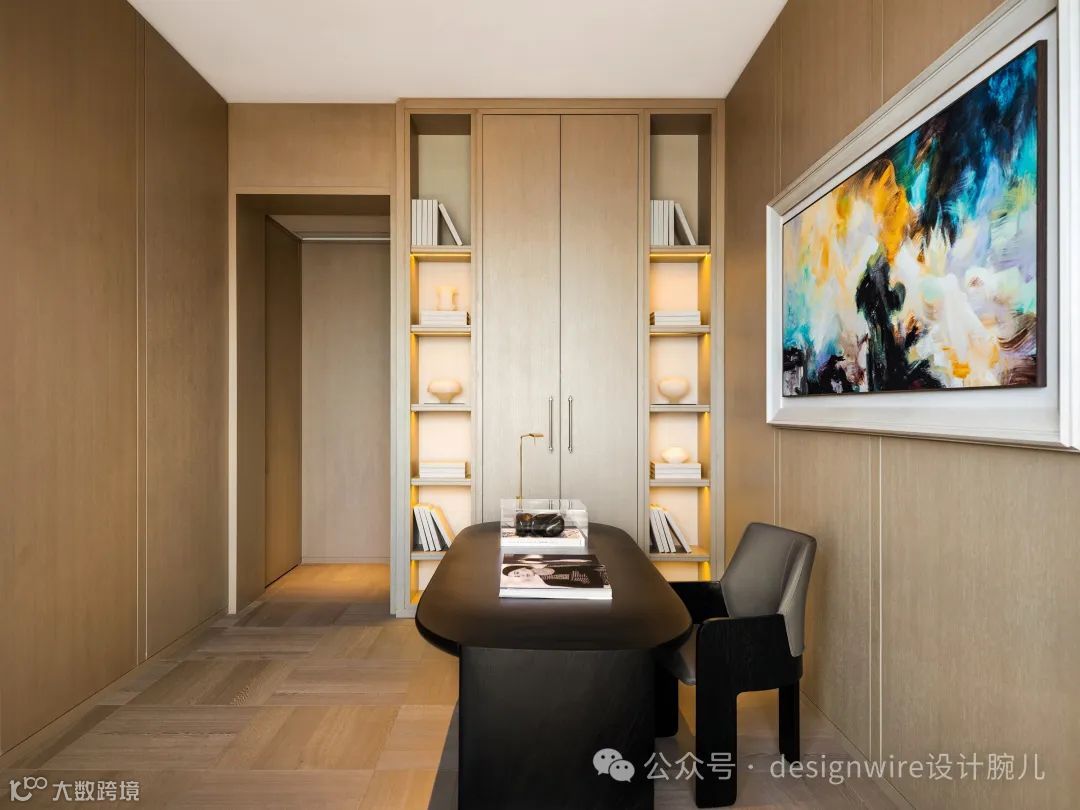 匠心巧思随手可得,房间显得练达“豪致”,智识与逸气过人。入户门外观专利的买断,以及定制的橱柜、衣帽间、收纳柜、私家电梯空间以及房号……