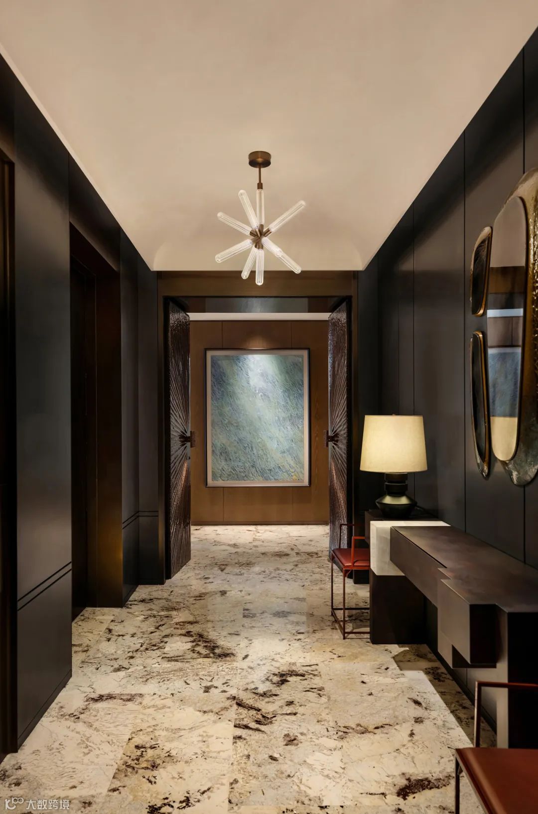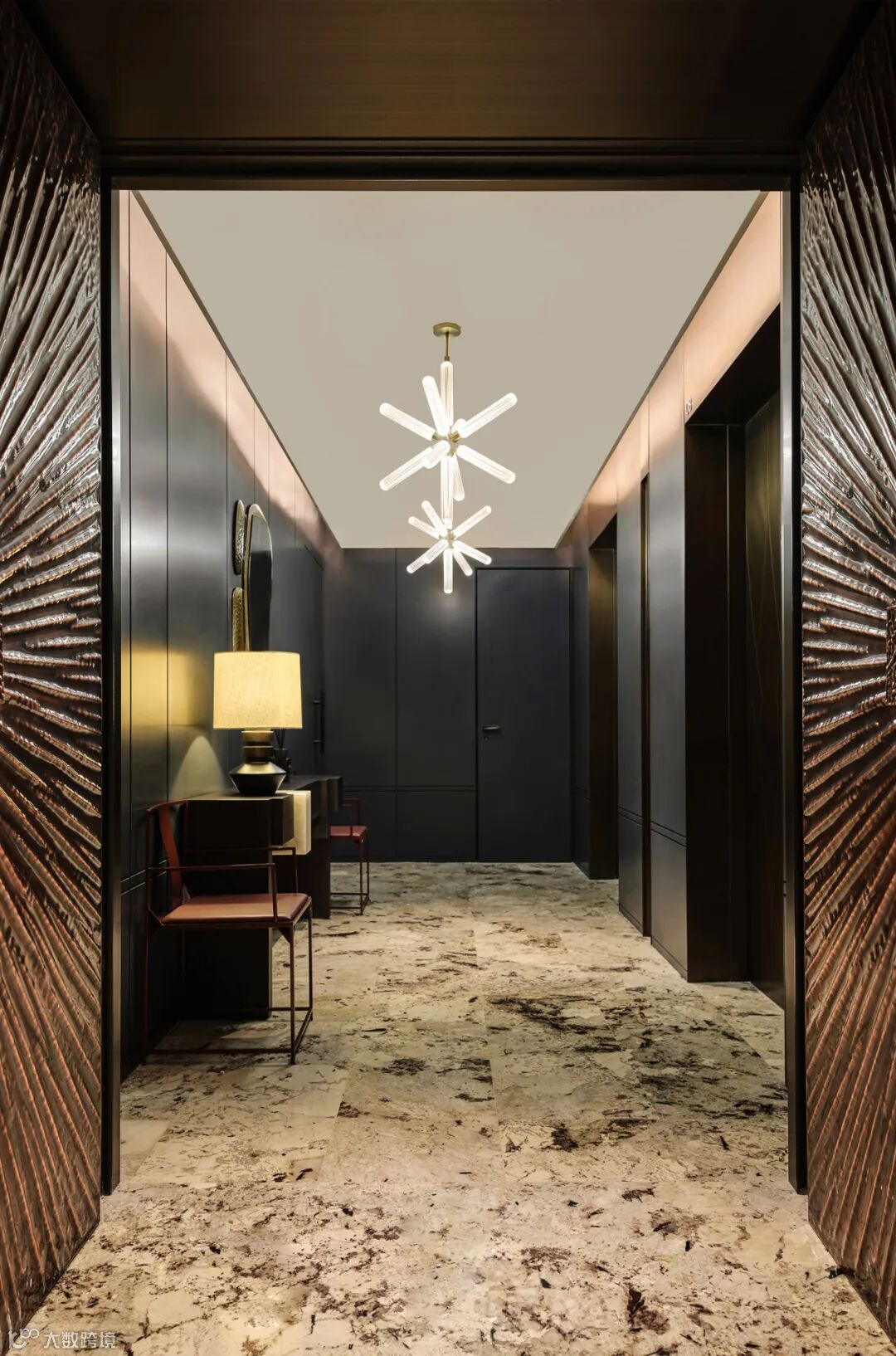 全球多达6种的稀贵奢石装点着室内,大面积、流动纹路的天然石材运用更是给人“一入户就震撼”的视觉冲击。土耳其古堡灰、意大利威尼斯棕、意大利鱼肚金和迪奥金……让室内成为一座奢石博物馆。