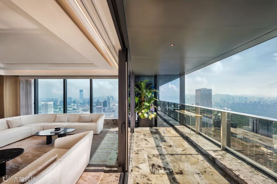 阔尺阳台将室内和咫尺的风景距离拉近,成为温暖气质和宏大精神的连接点。居高望远,是高楼林立镶天空,也是渺渺白云间,天地一何阔的放怀。