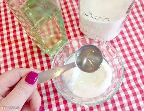 小半碗小苏打粉中加入一勺植物油,搅拌均匀。