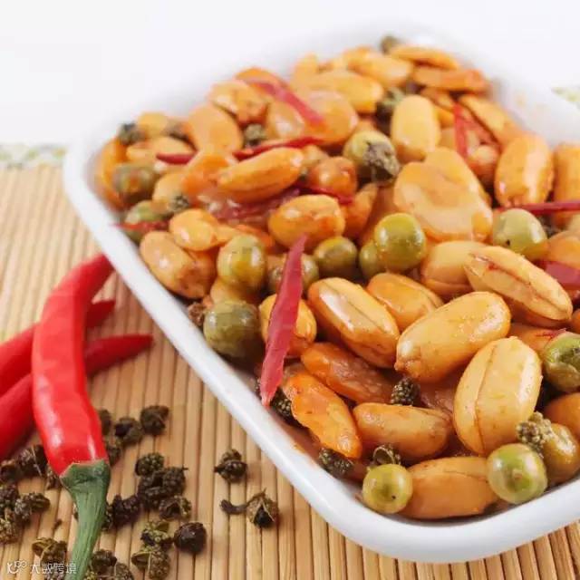 用料:花生米、花椒、干红辣椒、盐、白糖
