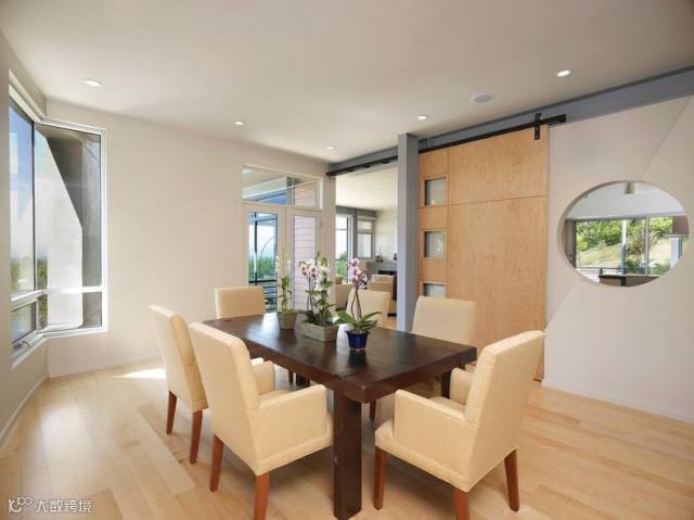 需要为直径120厘米的桌子留出空地,同时还要为在桌子四周就餐的人留出活动空间。这个方案适合于那种大客厅,面积至少达到600*350厘米。
