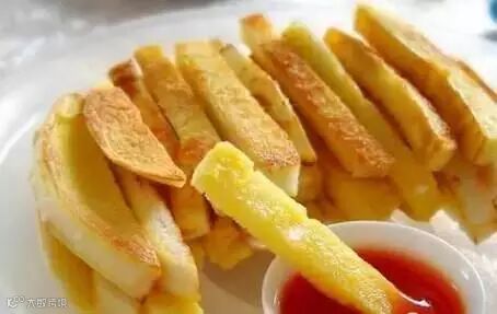 剩馒头每次都是炒着吃。其实,剩馒头也可以像这样煎一下,如同薯条般蘸着酸甜可口的番茄酱,一口口,一根根的吃,品尝不一样的剩馒头的西餐吃法~~~