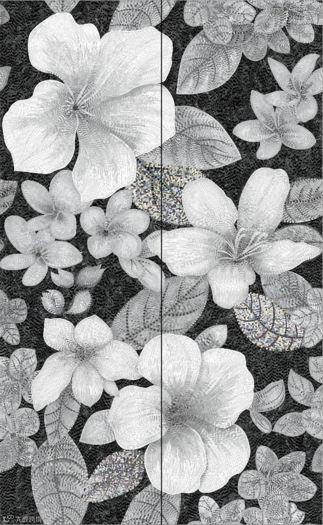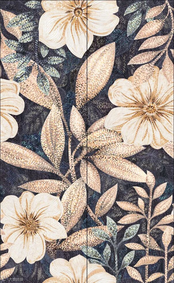 BJS静谧时光表面采用幻彩晶雕熔岩工艺,如晶体般炫彩而剔透的水珠凝固于花朵之上,呈现繁花盛开的光景,让整个空间的氛围都变得活泼生动,却又不显艳俗。