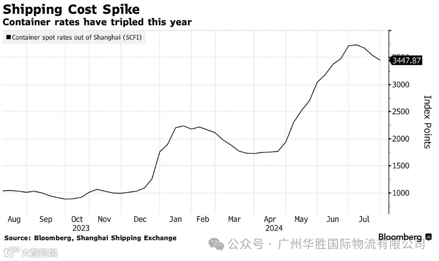来自也门胡赛武装的袭击迫使船舶绕行非洲好望角,而不是像往常一样通过苏伊士运河,这导致运费的上涨。Bloomberg Intelligence估计,经过苏伊士运河的集装箱船数量较一年前下降了约77%。马士基表示:“鉴于红海局势的不可预测性,以及第四季度供需缺乏确定性,交易条件仍将受到高于正常波动的影响。”