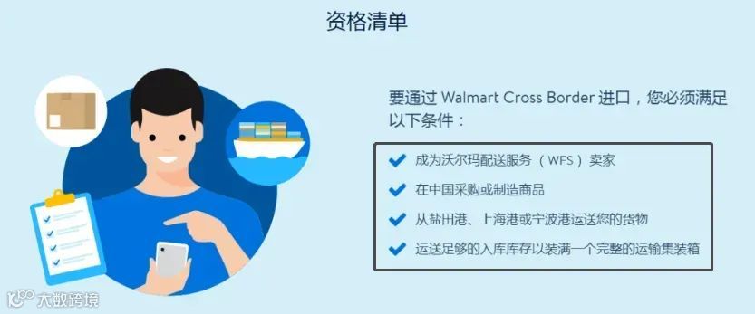 介绍显示,要想通过沃尔玛的Walmart Cross Border (WCB)进口货物,并须满足以下四个条件: