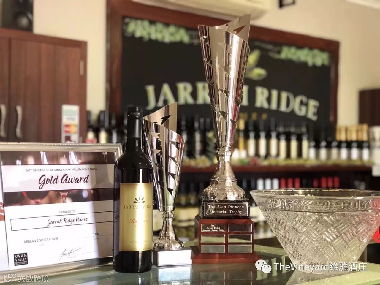 Jarrah Ridge Winery (佳涵岭酒庄)除了荣获 “最佳精品酒庄”外,我们的 Jarrah Ridge Reserve Shiraz 2016 还夺魁,拿下了Best 2016 Shiraz (“Allan Dinneen Trophy”) “最佳2016年西拉”的奖杯。此举万众瞩目,西拉是澳洲的代表性葡萄酒,这意味着我们华人有能力酿出最好的西拉,这是多年努力的成果。