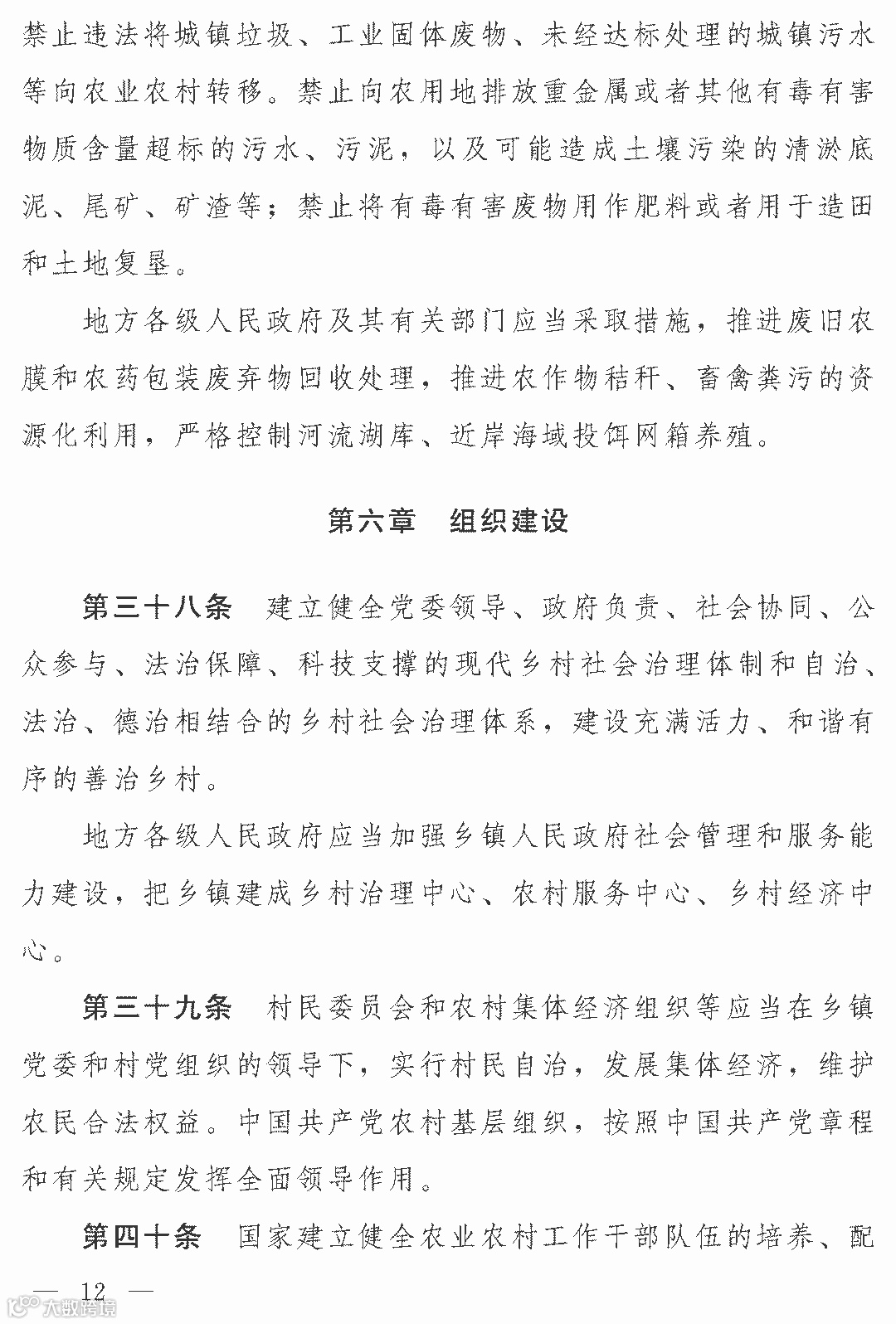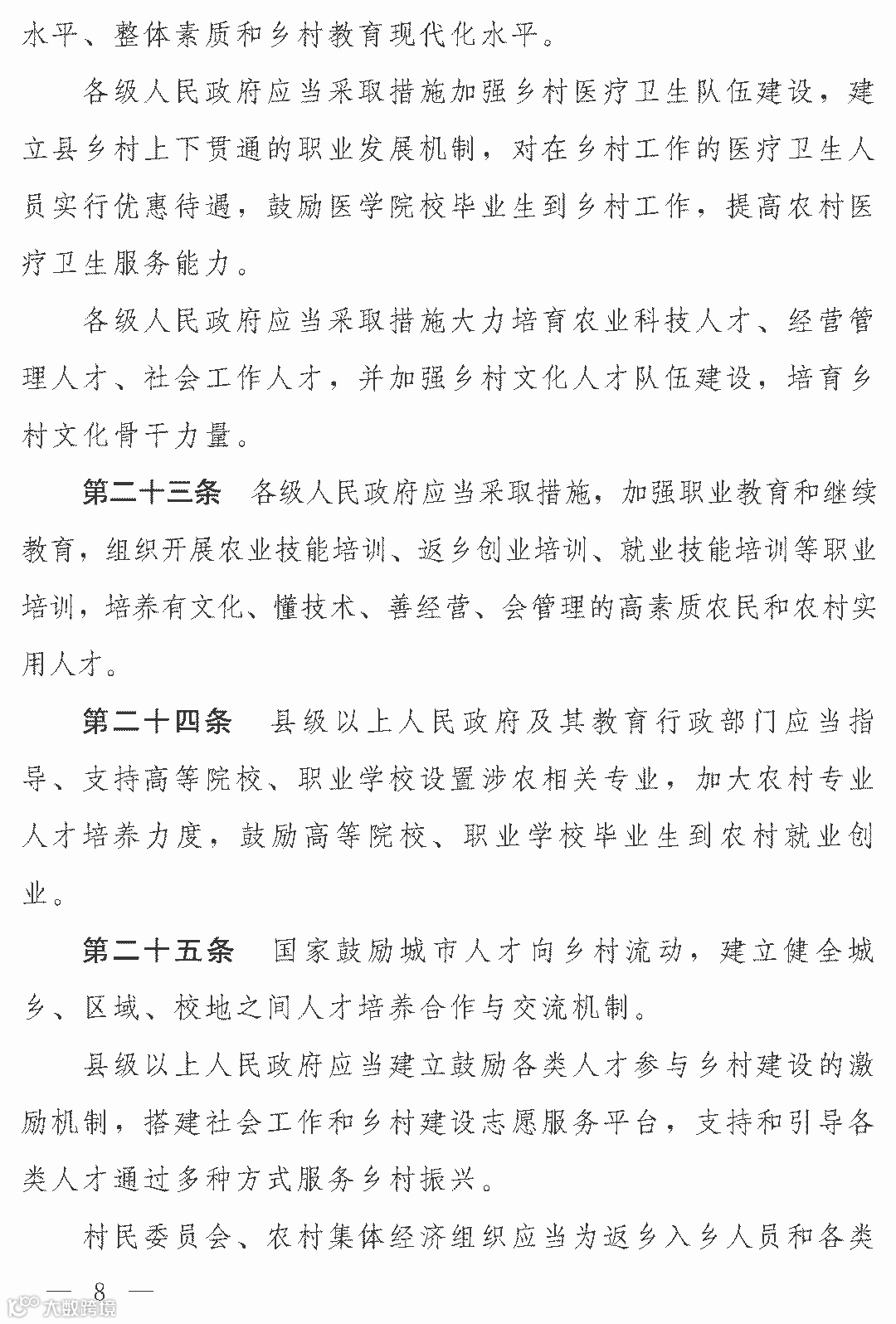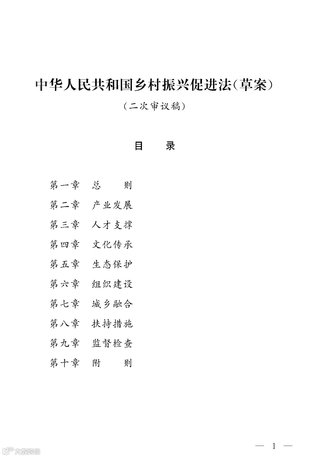 附 《中华人民共和国乡村振兴促进法(草案二次审议稿)》全文
