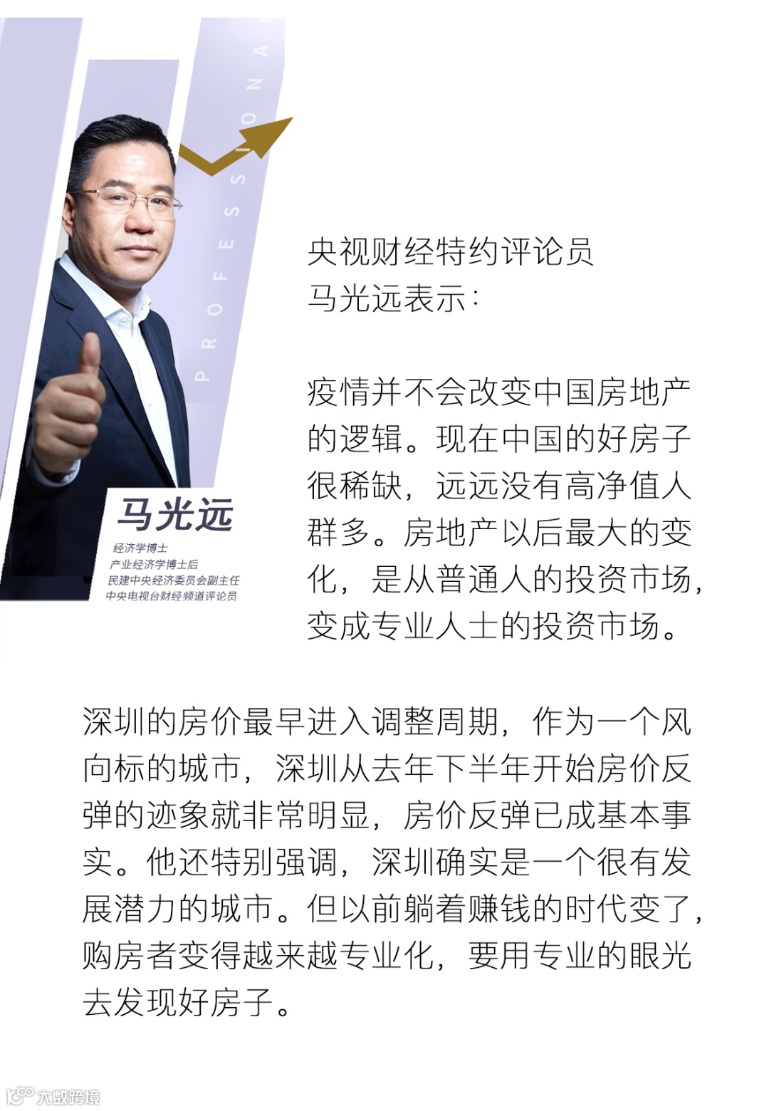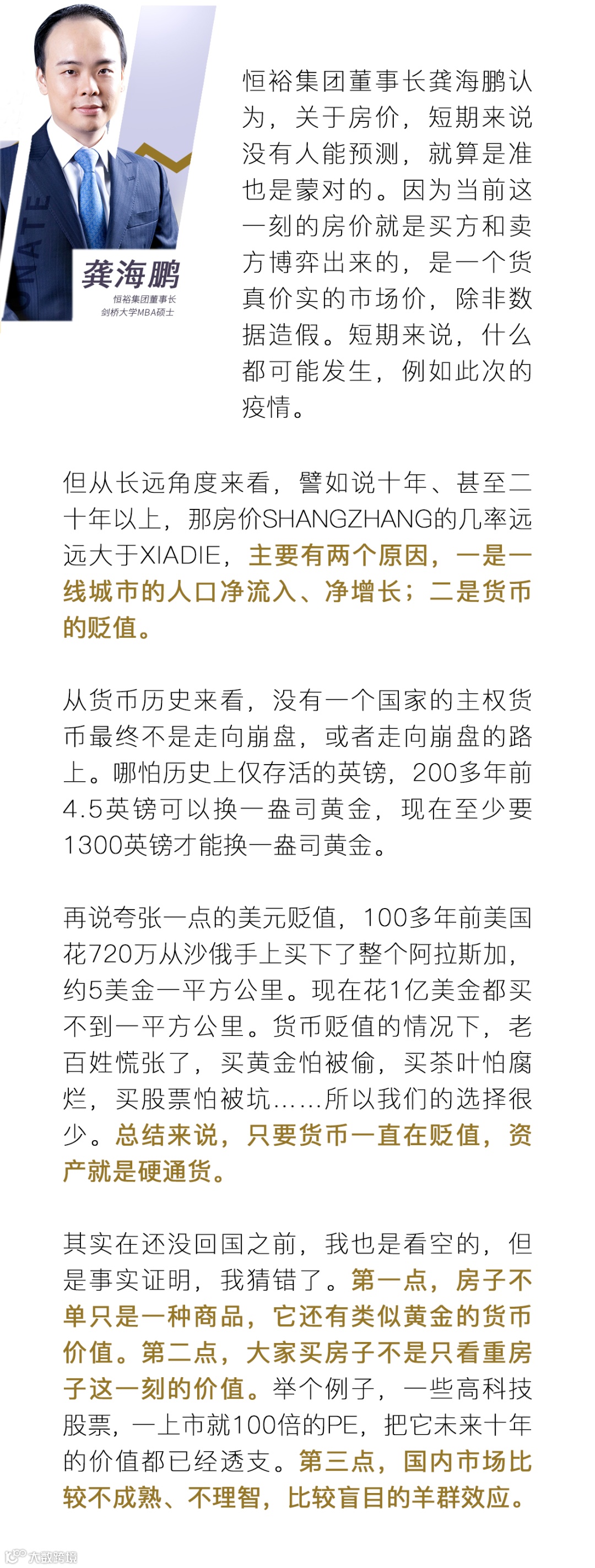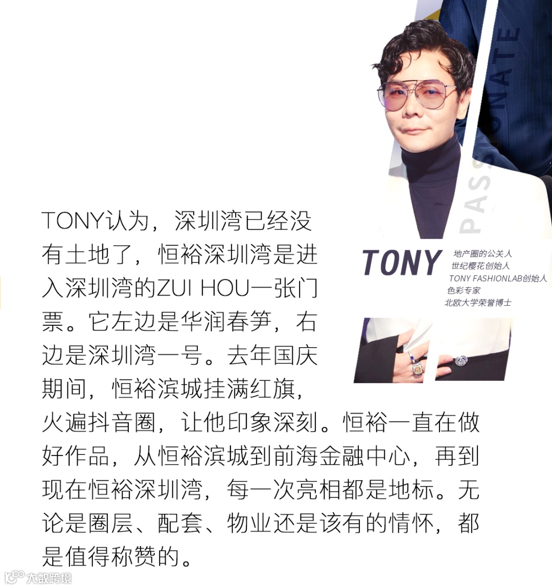 用央视财经特约评论员马光远先生来说,应以史为镜,照亮未来。相信自己的判断,寻找好的信任的产品才是关键。恒裕深圳湾就是TONY的全球好货。
