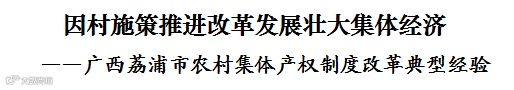 编者按:自中央部署稳步推进农村集体产权制度改革以来,各试点地区弘扬敢闯敢试、敢为人先的改革精神,勇于探索,大胆创新,为推动面上改革趟出了路子,试出了经验。在各省(自治区、直辖市)推荐的基础上,从前三批中央确定的试点单位中,选择了北京市大兴区等60个县(市、区),作为第二批全国农村集体产权制度改革经验交流典型单位。现将广西荔浦市经验材料刊发,供各地参考借鉴。