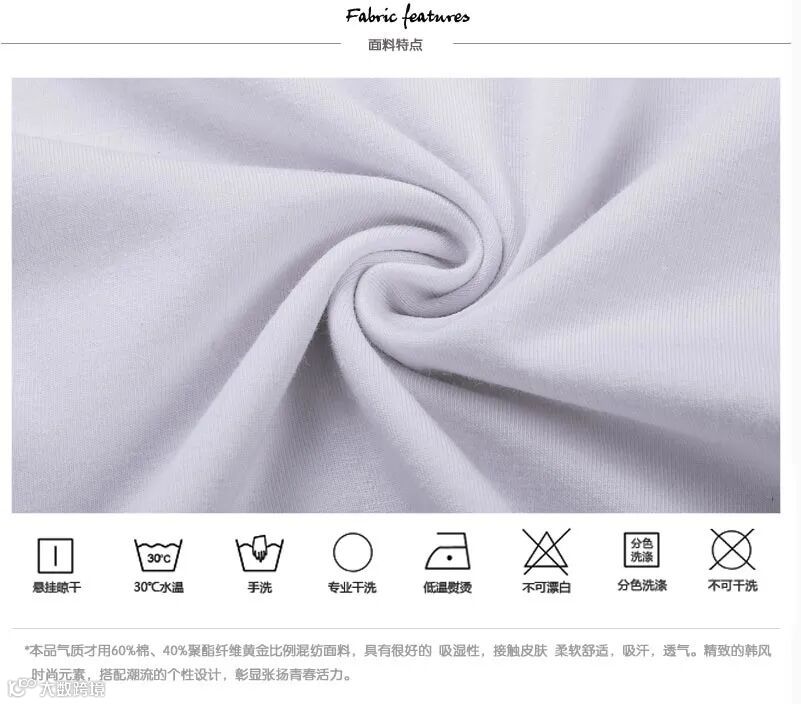 5、印花类服装应反面洗涤、不宜用力拉伸、避免熨烫;