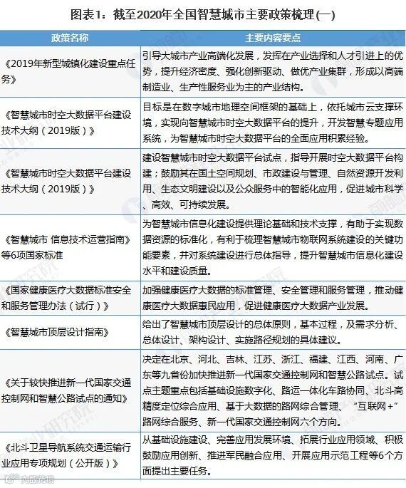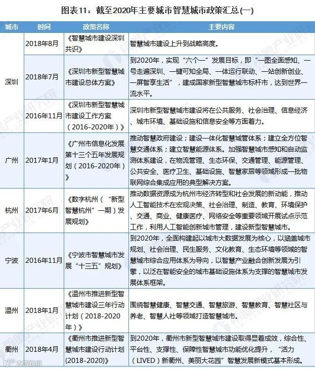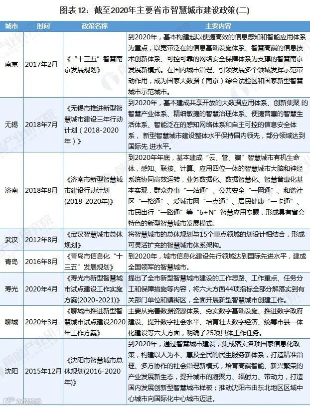 2012年,《关于国家智慧城市试点暂行管理办法》的出台拉开了我国智慧城市建设的序幕。2014年,智慧城市长期规划、指导意见陆续出台。2016年开始,国家与各省市"十三五"规划的出炉,把智慧城市建设作为未来城市发展的重心,同时政策文件分别从总体架构到具体应用等角度分别对智慧城市建设提出了鼓励措施,一系列政策的颁布实施为我国智慧城市建设方向与目标。