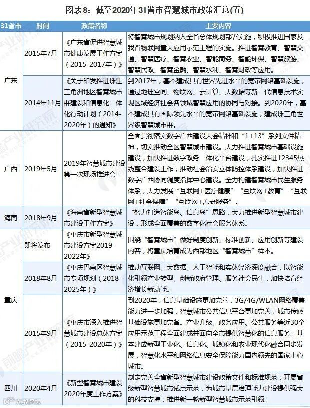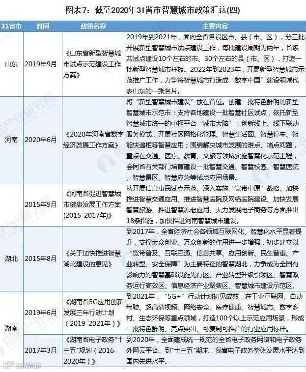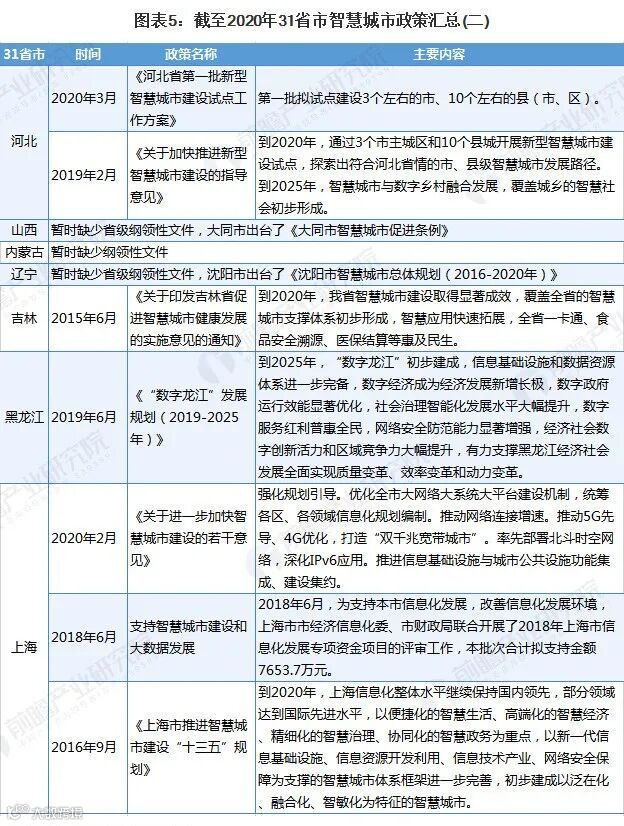 2015年底,中央网信办、国家互联网信息办提出了"新型智慧城市"概念,自此,深圳、广东、上海、北京等地都相继开始建设"新型智慧城市"项目。以陕西、河北、山东、江苏等为代表的多个省市出台了智慧城市发展的顶层政策,衔接上级部门,指导地方城市,逐步形成部门协同、上下联动、层级衔接的新型智慧城市发展新格局。