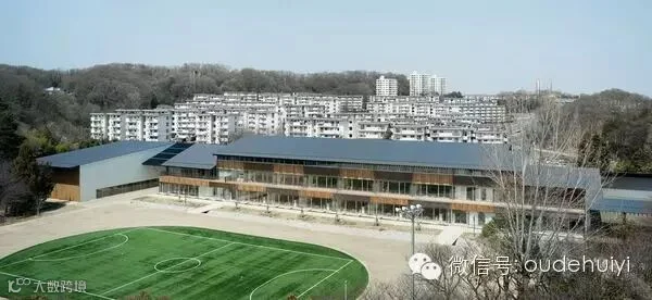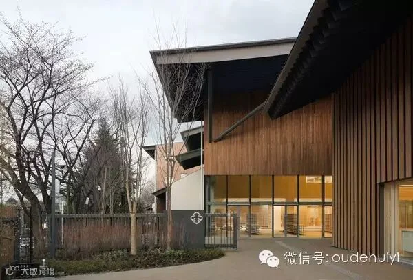 挤在城市高楼大厦缝隙里的学校似乎没有什么辨识度,一样的钢筋水泥建筑。但在日本,隈研吾事务所为东京帝京大学的附属小学设计了一座木屋校舍。在这样的环境下读书成长,会对大自然更有亲近之心的吧。