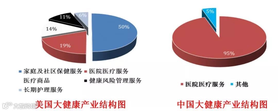 如果回顾一下医学体系的四大门类:预防医学、临床医学、康复医学、保健医学,就会清晰的发现医学体系对康养地产的产品体系的重要性。下图是中国和美国健康产业的对比: