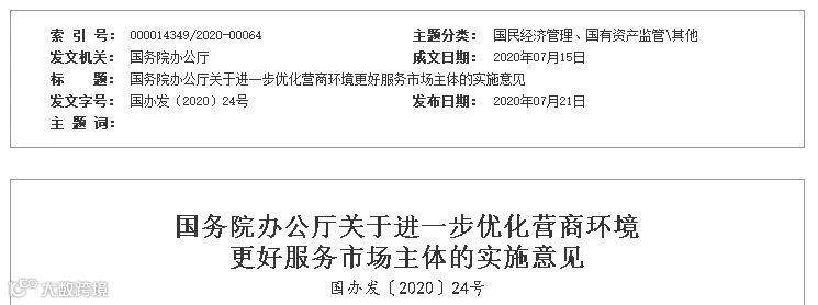 7月21日,国务院办公厅正式发布《国务院办公厅关于进一步优化营商环境更好服务市场主体的实施意见》,提出六方面20条具体举措,强化为市场主体服务,持续深化“放管服”改革优化营商环境。其中多项与公共资源交易密切相关。