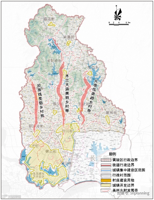 以武汉市黄陂区全域村庄规划为例,规划基于全区自然资源整体布局分析以及现状全区村庄建设布局情况,综合形成分片区的村庄发展指引。