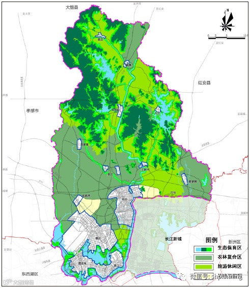 武汉市村庄规划中遵循这一思路开展了村庄产业规划引导,在区级层面强调自然资源的合理利用。以黄陂区全域村庄规划为例,在全区层面充分结合前述自然资源整体分布特征形成不同的产业发展导引。