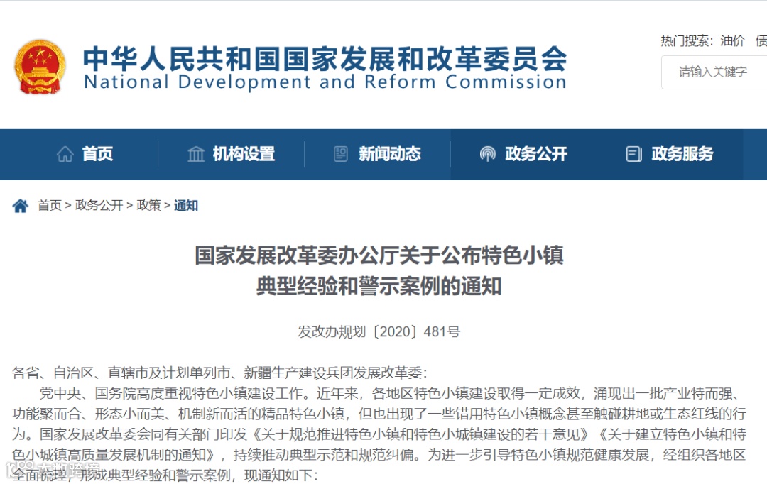 国家发展改革委办公厅关于公布特色小镇典型经验和警示案例的通知