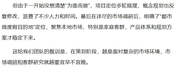 说难,是它需要放弃一些投机取巧、置身事外的做法,从实际出发,以问题为导向,踏踏实实地做好市场调研、规划设计、开发谋划,一个一个产品反复推敲;还要舍得花时间花精力让开发、产业、运营、规划等多团队充分沟通协调,做到集思广益、开放合作、共谋发展。