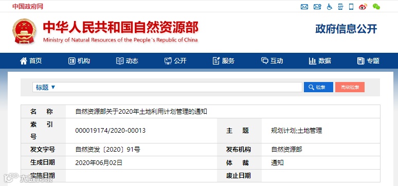 自然资源部关于2020年土地利用计划管理的通知