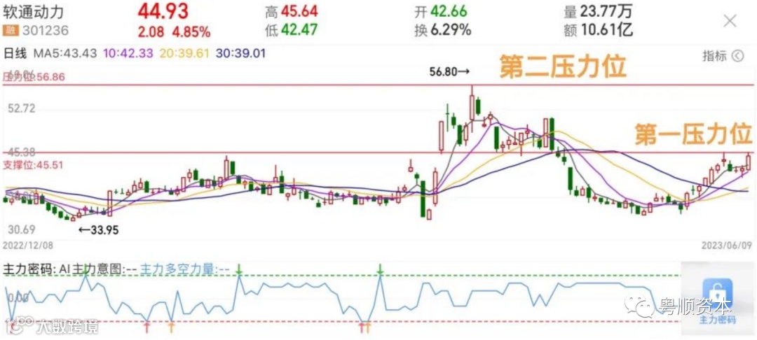 最后,301236软通动力,AI+华为+虚拟数字人,周一已经提示过机会,若明天高开过第一压力位,车上的朋友可以看56元附近的压力再选择去留(具体还需结合盘面走势)若明天先回踩,稳健则等回踩5日线附近再低吸;(勿追涨!!)