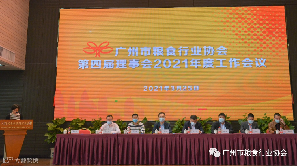 3月24日上午,广州市粮食行业协会第四届理事会2021年度工作会议在广州交易所集团交易大厅举行。遵照防疫防控的相关要求,会议采取主会场+线上直播的方式,其中出席主会场的共50人,未到场的会员企业代表共100多人次通过二维码参与会议直播。应邀出席主会场的领导有:广州市储备粮管理中心郭志健主任,广州市储备粮管理中心陈泽平副主任、储备部蔡楚广部长,广州市发展和改革委粮食和物资储备处熊紹峰同志,各区发改局分管粮食工作领导和粮食科负责人。协会的会长单位、副会长单位,以及部分理事单位的代表出席了主会场。会议由黄慧敏常务副秘书长主持,新任副会长、广州交易所集团有限公司董事长宋林泉致欢迎辞;张文生会长作广州市粮食行业协会第四届理事会2020年度工作总结和2021年度工作计划报告;曾学钧秘书长报告第四届理事会2020年度经费收支情况;会议宣布了协会延期换届和增聘副秘书长的决定;宣读了获评“广东好粮油”的13家企业和16个产品名单;解读了“广州市粮油运输专用准许证和禁行证使用管理办法”。
