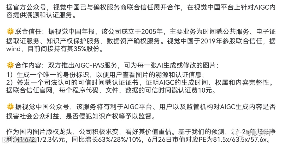 最后,000681视觉中国:AIGC中少有的一季度预增,且业绩能快速落地的个股,机构观点如下图(仅供参考)