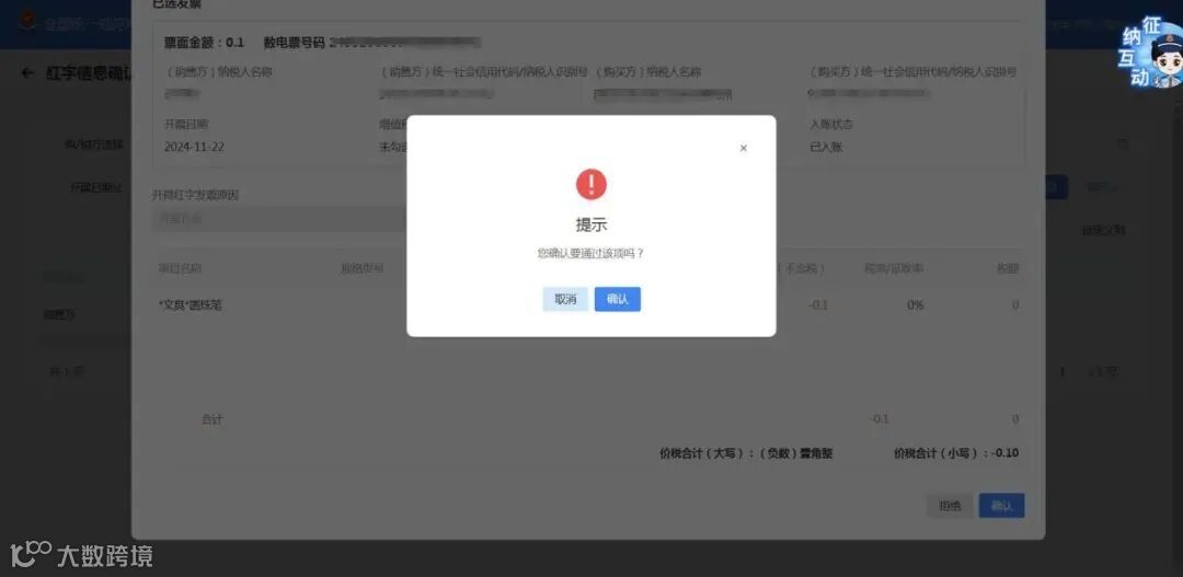 点击进行二次确认,确认后提交税务机关审核,审批通过后才红冲成功,可以在【我要办税】-【发票使用】-【发票代开红冲】-【红字发票记录】查看开具成功的红字发票。