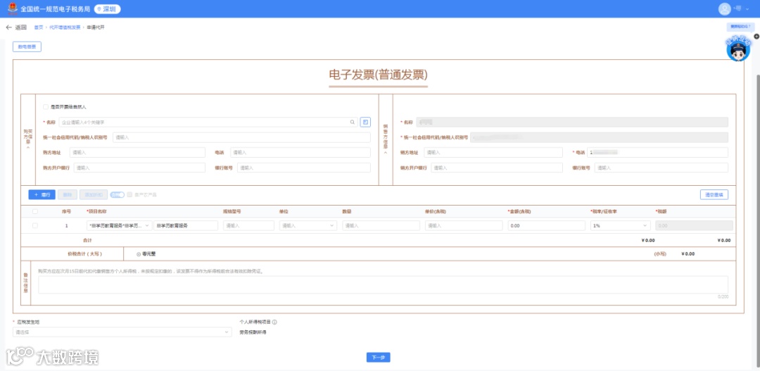 下面以货物、服务等一般代开为例进行说明。