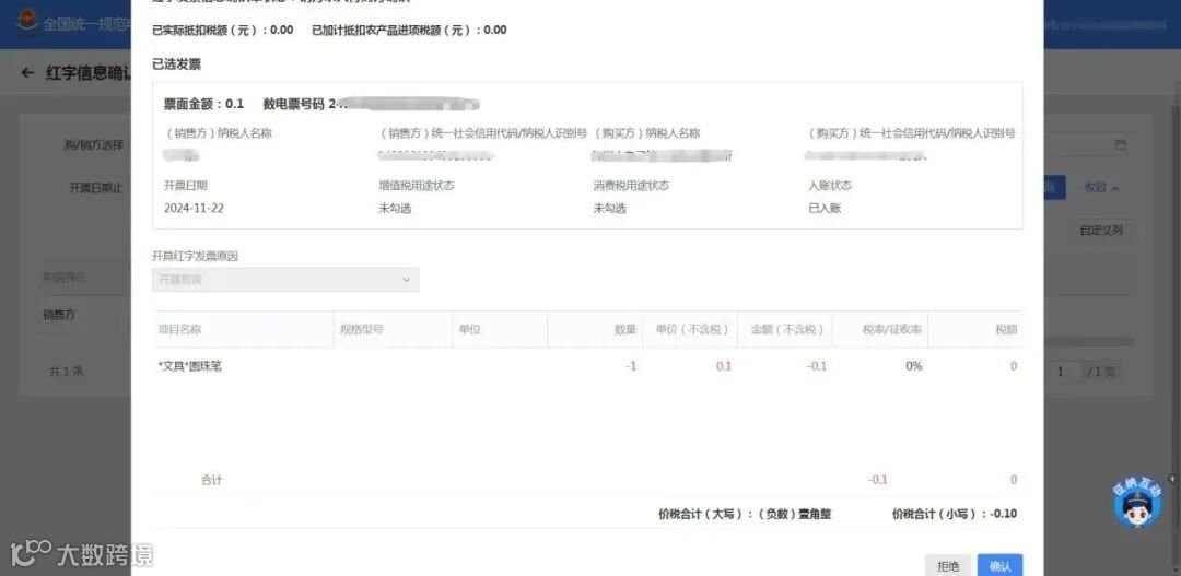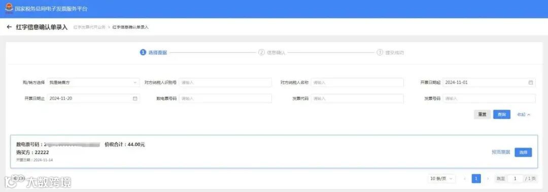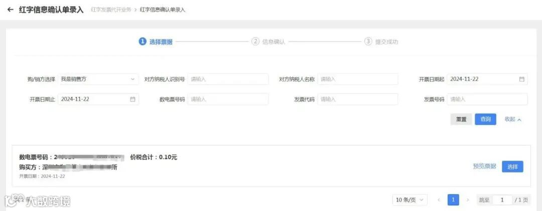 第一步:选择要红冲的发票。
