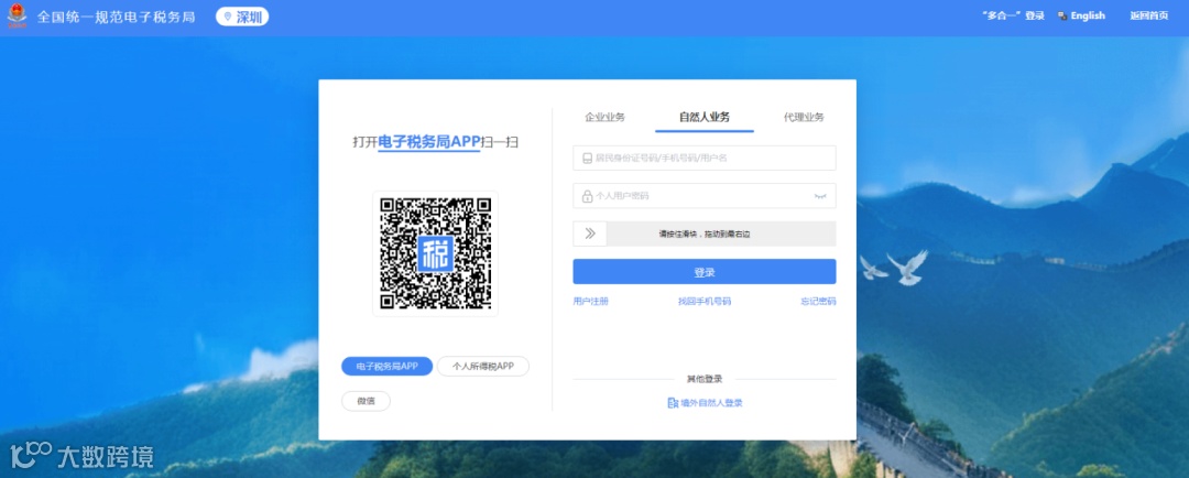 通过自然人业务入口登录网页版电子税务局。