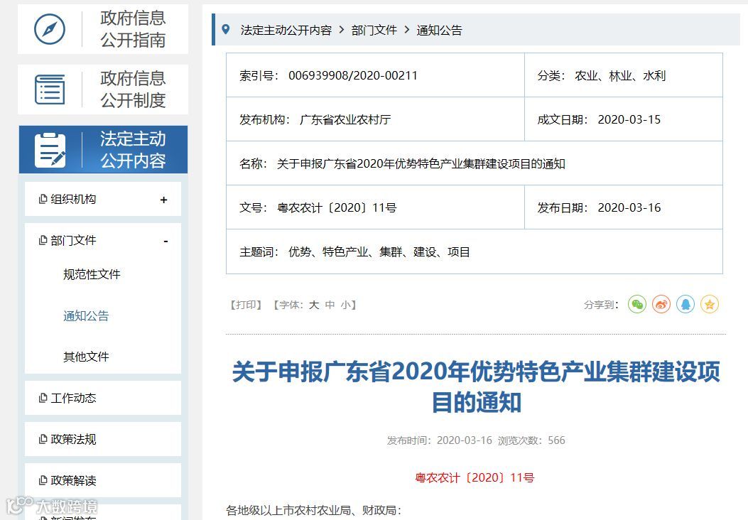 关于申报广东省2020年优势特色产业集群建设项目的通知
