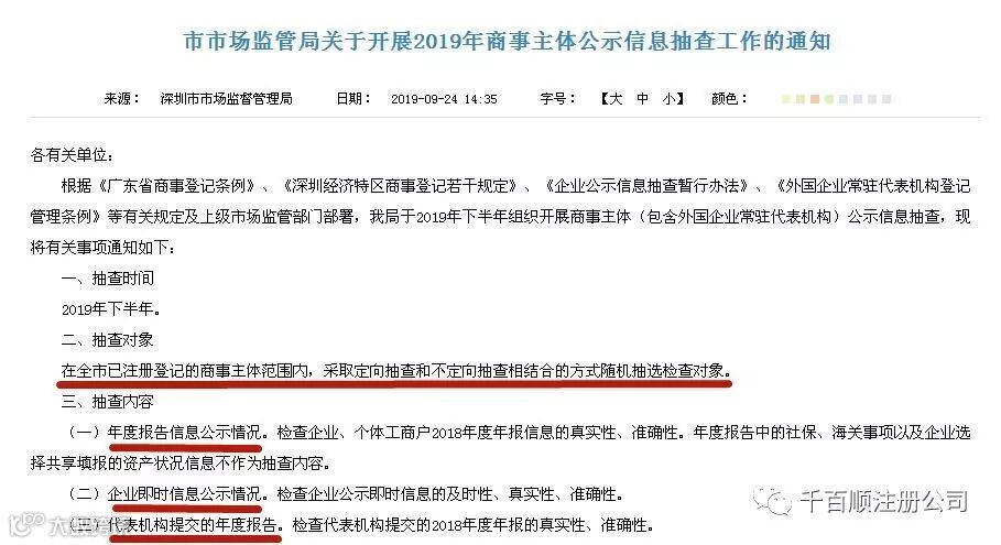 上半年忙着催大家2018年度年报(2019年度年报开始实行滚动年报~),下半年深圳市市场监督管理局就开始对客户大大们的2018年度年报公示信息,进行随机抽查啦!!!