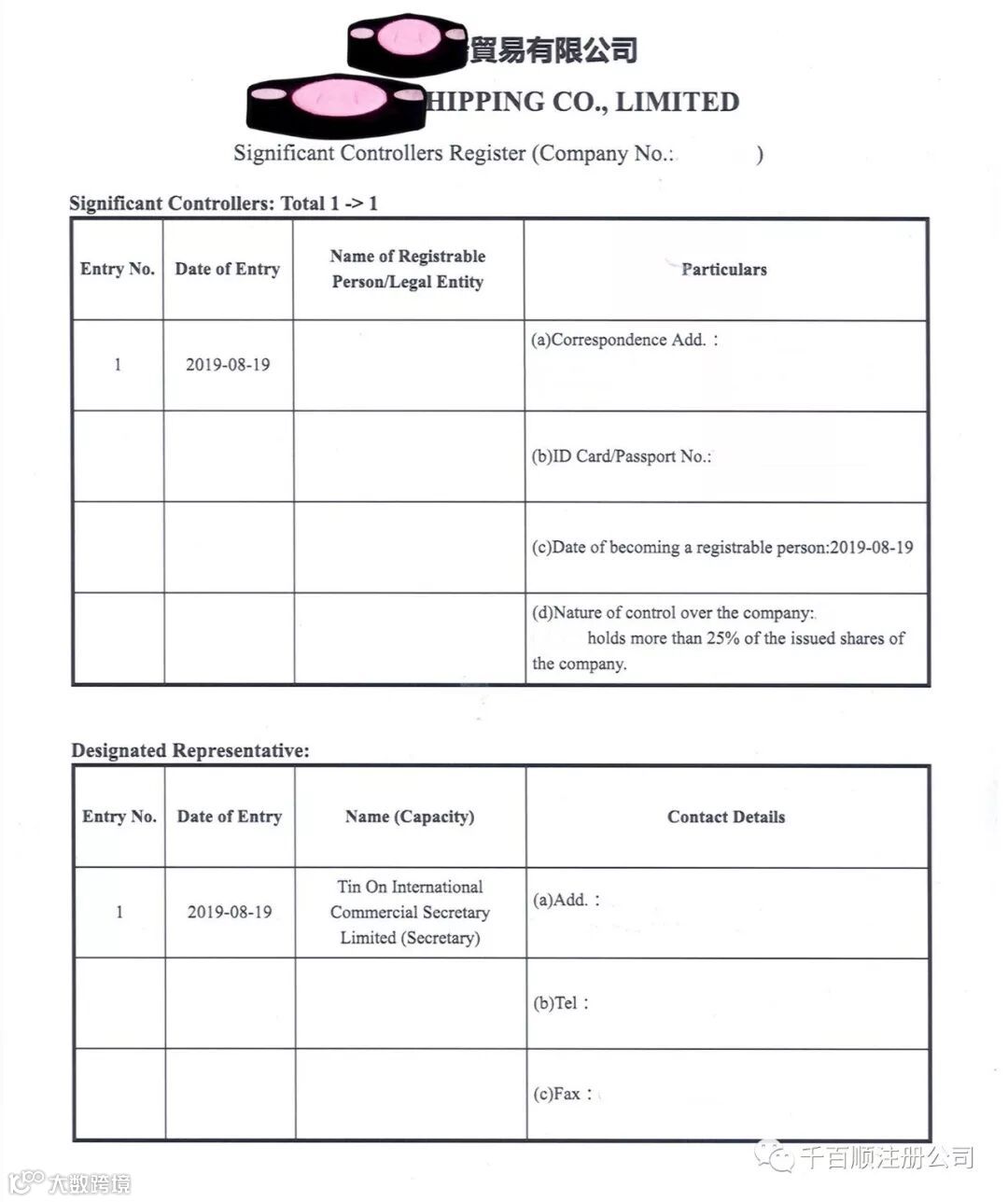 值得注意的是,变更股东,备存重要控制人也要重新登记在册。必须在重要控制人登记册上填写该重要控制人的姓名、地址、身份证号码、成为控制人的日期以及对公司所施加的控制的性质等详细数据。