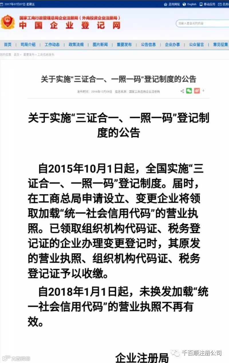 千百顺将于2017年7月集中人力、物力统一办理更换执照事宜,已收到我司邮件的企业务必重视起来,尽快给您的营业执照换上新装,不要因一时大意,酿成严重后果!