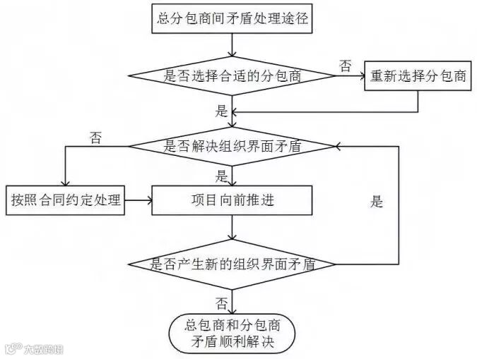 当择优选出相应的分包商后,接着要考虑彼此之间在哪些方面会产生界面矛盾,然后提出合理的解决方案,如果此方案未能解决界面矛盾,则需要按照合同约定处理使项目继续向前推进。