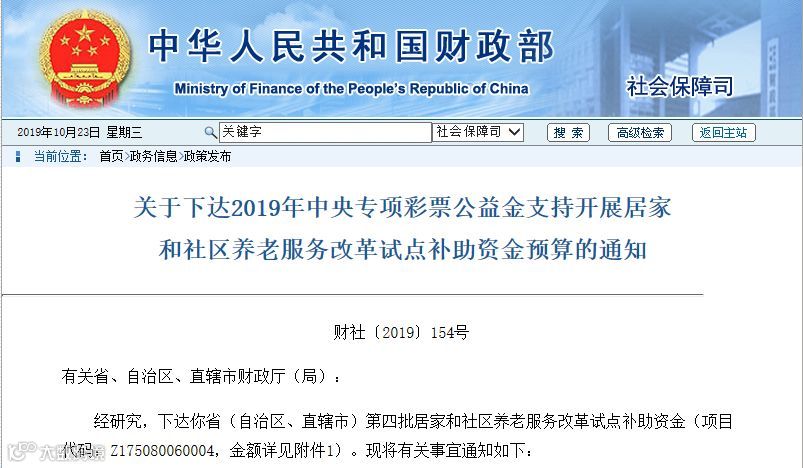 经研究,下达你省(自治区、直辖市)第四批居家和社区养老服务改革试点补助资金(项目代码:Z175080060004,金额详见附件1)。现将有关事宜通知如下: