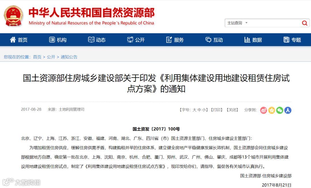 回顾2017年8月的一个超级重磅的楼市调控措施:国土部、住建部联合发布了《利用集体建设用地建设租赁住房试点方案》,宣布将13个城市纳入试点!