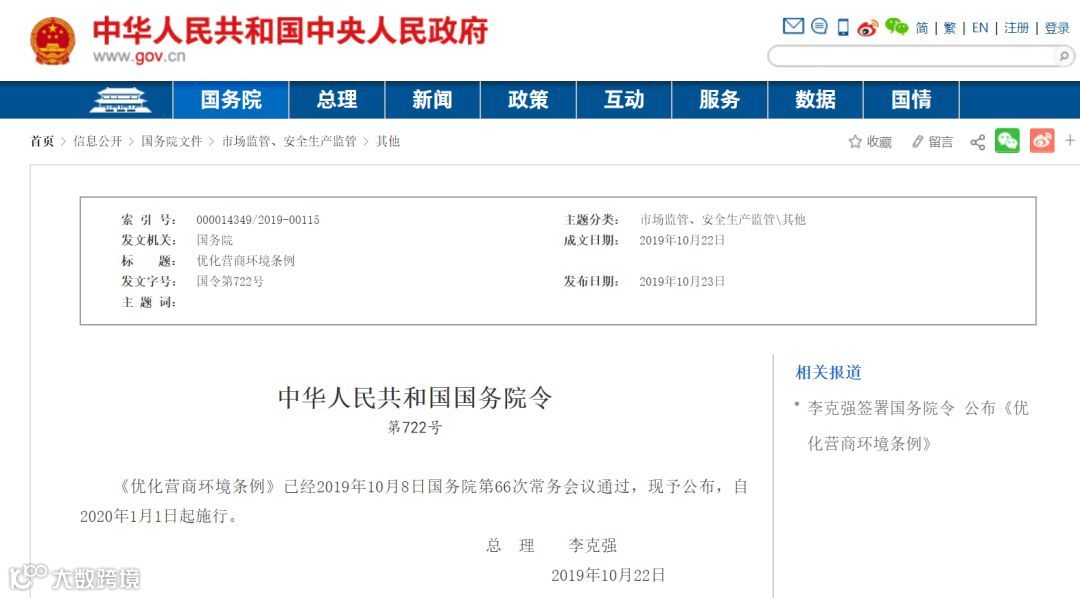 为最大限度减少政府对市场活动的直接干预,10月23日《优化营商环境条例》正式公布!