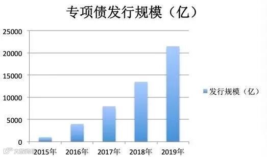 据21世纪经济报道记者梳理,过去五年间专项债(新增)发行规模呈现快速增加的态势:专项债于2015年首度发行,当年发行1000亿。2016年、2017年,其发行量分别扩张到4000亿、8000亿,2018年首度超过1万亿,2019年扩张到2.15万亿。专项债的大规模发行、使用对稳投资、稳经济起到了重要作用。