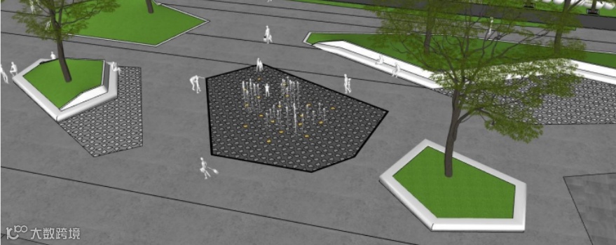 ▲鸿福广场前布景