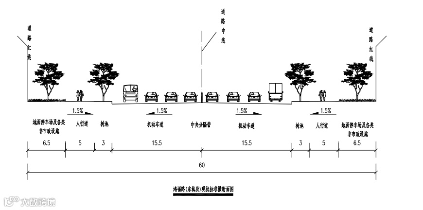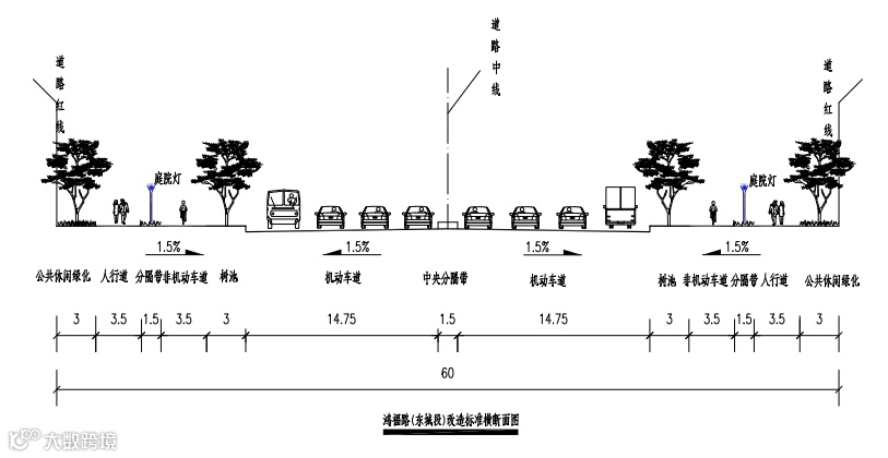 ▲鸿福路(东城段)改造标准横截面图