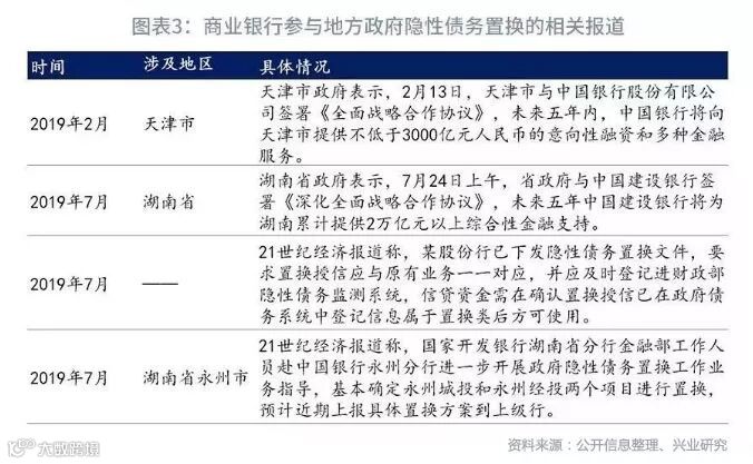 但近期我们调研发现,商业银行参与地方政府隐性债务置换的积极性明显提升。根据21世纪经济报道,2019年6月,监管部门下发防范化解融资平台公司到期存量地方政府隐性债务风险的意见,因文件涉密,并未对外公布。2019年7月,21世纪经济报道称,某股份行已下发隐性债务置换文件,可置换其他金融机构隐性债务,并对置换条件及置换形式提出具体化的要求。根据近期调研了解的情况,目前隐性债务置换政策愈加明朗,中央对商业银行参与隐性债务置换提供了较为明晰的政策指引,因置换隐性债务产生的金融机构借款仍可被认定为隐性债务,可在隐性债务系统中进行关联登记,地方财政部向借款人回函确认该笔债务纳入隐性债务。但同时中央对严控地方政府隐性债务增长的态度仍十分坚决,重申只有在隐性债务系统中的债务才能够被置换,且只能置换本金,置换过程中不得新增隐性债务,置换债务的到期日不得超过隐性债务化解期限等。